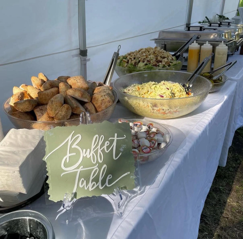 We cater events for a minimum of 25 to over 2,000 guests, offering full-service buffets, drop-off meals, or pickup options.
